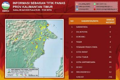 Sebanyak 236 titik panas tersebut terpantau Sabtu mulai pukul 01.00-17.00 WITA.